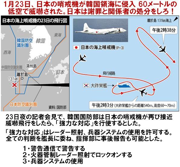 きたが、度重なる野蛮な日本の挑発威嚇飛行に対して、韓国軍は、全ての探知装