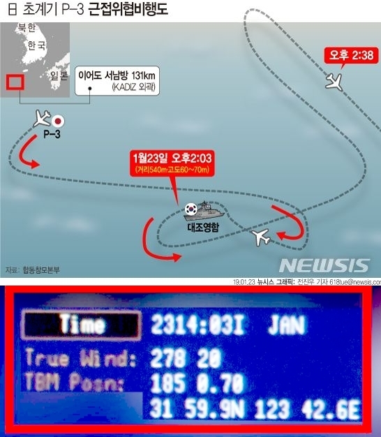 【夕刊フジ】 韓国国防省が、海上自衛隊の哨戒機が韓国駆逐艦に低空接近して「威嚇飛行した」と主張し、その証拠として公開した5枚の画像に“新たな疑惑”が持ち上がった。元防衛省の情報分析官、西村金一氏が徹底解析した結果、レーダー画面の画像に記録された「緯度・経度」が、韓国側が「威嚇飛行」があったという海域とは、まったく違っていたのだ。