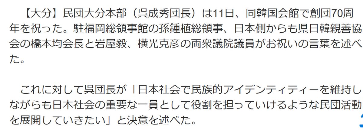 政治家としてのセンスの問題なんて報道もあるが、民団とズブズブなんだよね岩屋さん。民団大分支部創立70周年に出席しているようだし(秘書代理かもしれない)