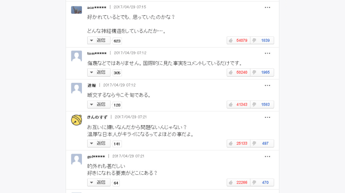 旬のニュースにコメントしてる連中がいるから、とくとご覧あれ(笑)韓国が嫌いだって意見に共感がすごいんだが