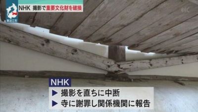 NHKドラマ撮影で名刹の重要文化財の一部を破損