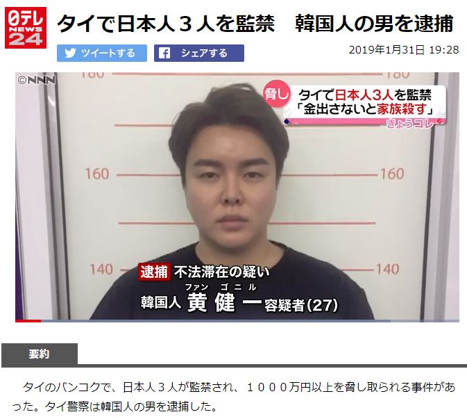 流石、犯罪大国wタイで日本人3人監禁 逮捕の韓国人の男が死亡
