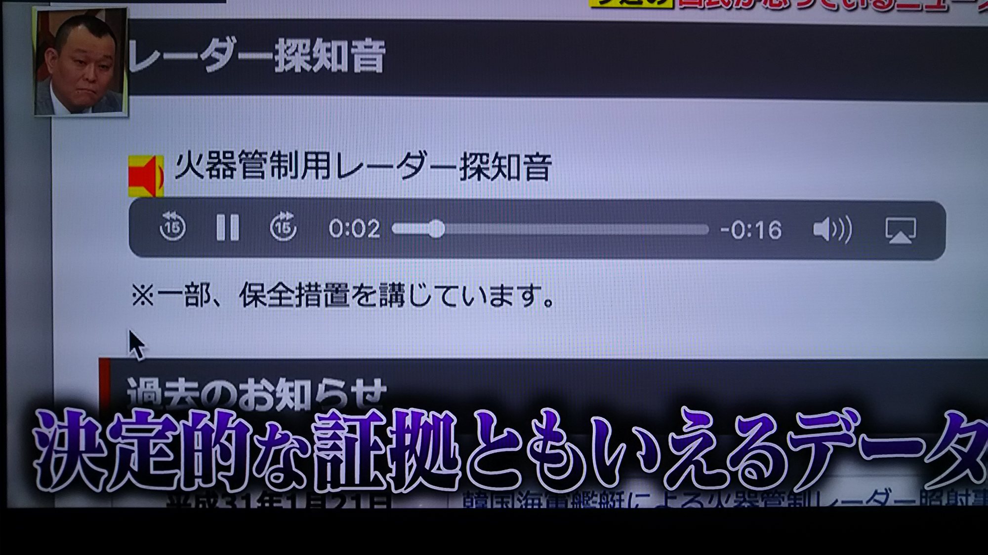 この記者は日韓軍事情報協定を知らないらしい。> では、日本哨戒機を威嚇したというSTIR-180レーダーは本当に照射されなかったのだろうか。海軍によると、「広開土大王」にはレーダー稼働記録装置がない。このためこの艦艇の乗組員を調べたが、STIR-180をつけたという陳述がなかった。海軍戦術指揮統制システム(KNTDS)コンピューターには韓国軍が稼働したすべてのレーダー記録が残っている。ところがここには「広開土大王」のMW-08稼働記録だけしかなかった。KNTDSは合同参謀本部と青瓦台、作戦指揮所と艦艇などで同時に見ることができる。