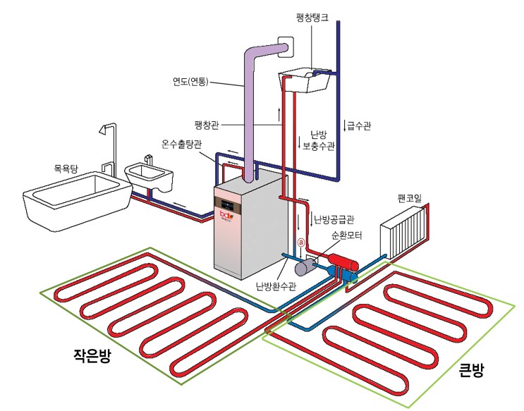 今は大部分家庭が電気·ガス。石油ボイラーを使うが