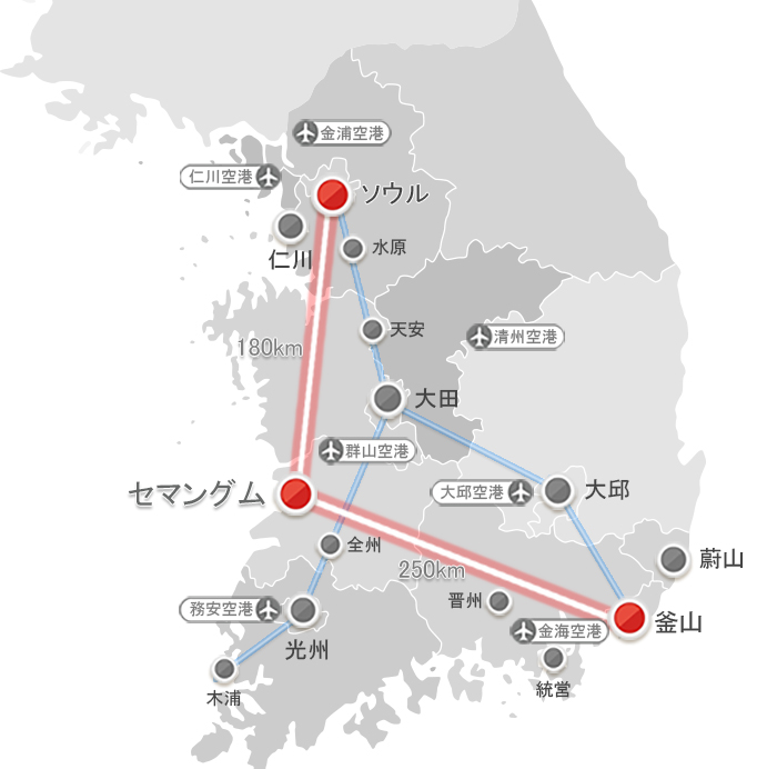 セマングム近くの全羅南道務安空港も年間旅客需要を992万人と推定して着工したが、昨年の実際の利用客は31万人に過ぎなかった。需要予測が32倍膨らませられたわけだ。務安空港の滑走路は、年間14万回の使用可能ですが、実際の利用率は1.7%に過ぎなかった。ところが、その横にセマングム空港まで炊く台無しにされることが明らかだ。