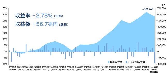 市場運用を開始した2001年度からの累積収益額は56兆6,745億円