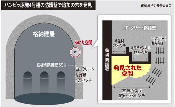 きたが、今回は新しい形の超大型の空隙が発見され、格納庫のコンクリートの壁が放射線