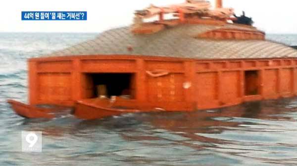 44億ウォンを使い、造船大国 韓国が 設計復元した 亀甲船は 何も載せない状態で 曳航中に沈みかけた。