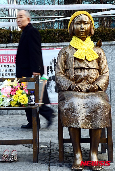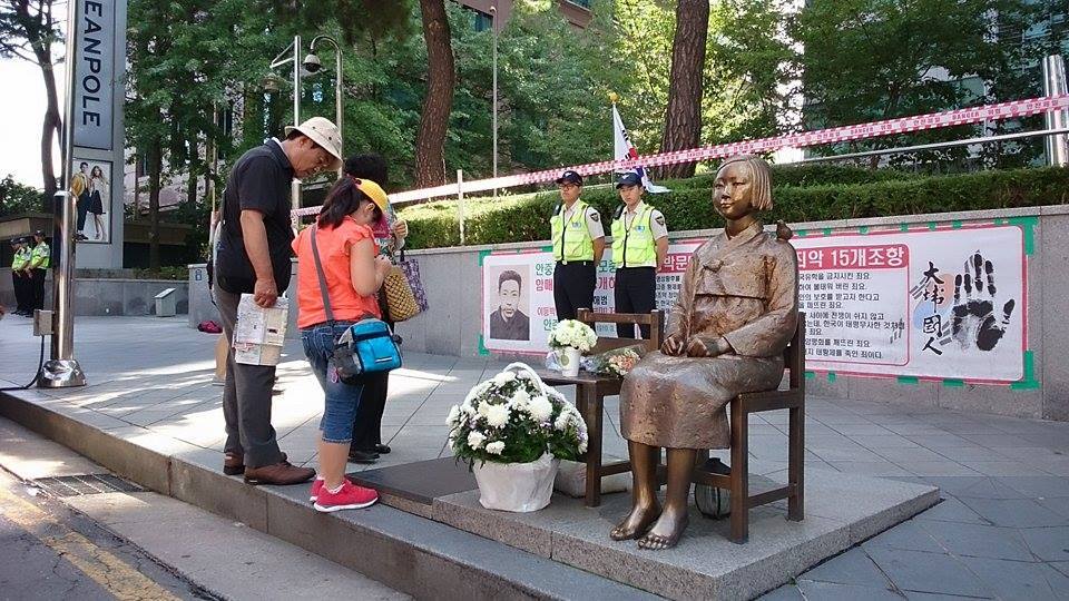 常に、要人並の最高のセキュリティで警護され、多くの韓国人の崇拝を受けている。たぶん、ここで祈ると、賠償金や賄い金が得られるという、御利益が得られるからである。また、この像は、ブリュセルの小便小僧のごとく、季節によって衣服を変える、オシャレな像だ。