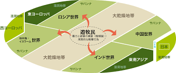 砂漠地域やステップの前提条件も独特、ステップ周辺の遊牧は高速移動で自給自足集団の統合力や富の分配が広い、敵対勢力に対して攻撃的で破壊的な勢力だったともいえる、そのため敵対の幼虫は成虫になる前に破壊される繰り返し。
