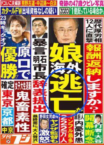 文大統領の娘に「逃亡」という表現を使った日本の新聞の1面が国内のオンライン上で広がり、