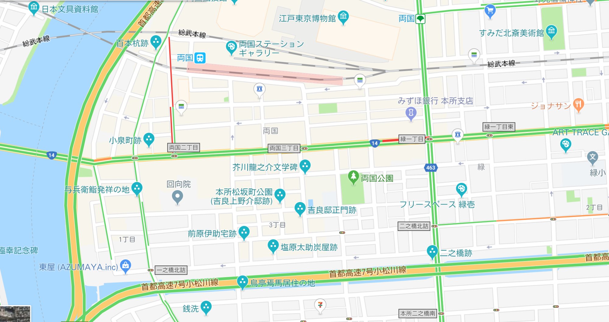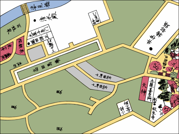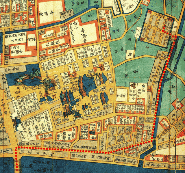 道路や運河は基本的にそのままの位置関係にある。江戸時代の場所は大体分かるのだよ。>>45