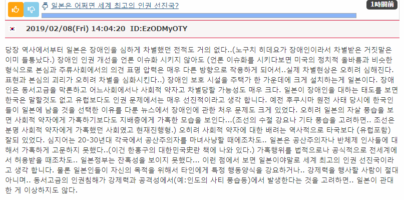 이 모든것은 둘째치고, 문단의 나눔이나 줄 바꿈등을 생각하지 않은 저급한 글쓰기라는게 먼저이지만.朝鮮人が読み手のことを考えて文章を書くわけがない。