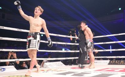 すると、YURAも意地を見せ、パンチでの打ち合いへ。リング中央で右ストレートを強打すると、ソンヒョンがふらつき、パンチ連打でダウンを奪う。続けて、右フック、パンチ連打で追い込み、ふらついたソンヒョンを見てレフェリーがストップした。