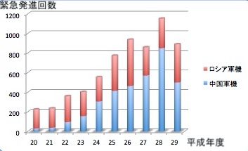 一昨年のロシア機に対する航空自衛隊の緊急発進回数は、約400回。
