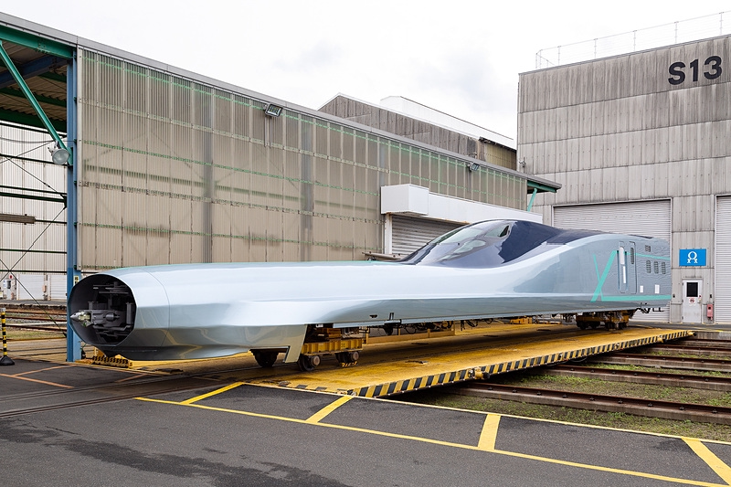 JP東日本は2030年に予定されている新幹線の新函館‐札幌間の開業に合わせて、時速360キロの営業運転を目標にALFA‐Xを開発している。「ロングノーズ」と呼ばれる長さ約22メートルの鋭い先端部分は、トンネルに入る際の衝撃や騒音を低減する効果がある。今年5月に完成する試験車両には、地震発生時に車体の揺れを抑制する装置も搭載されるという。