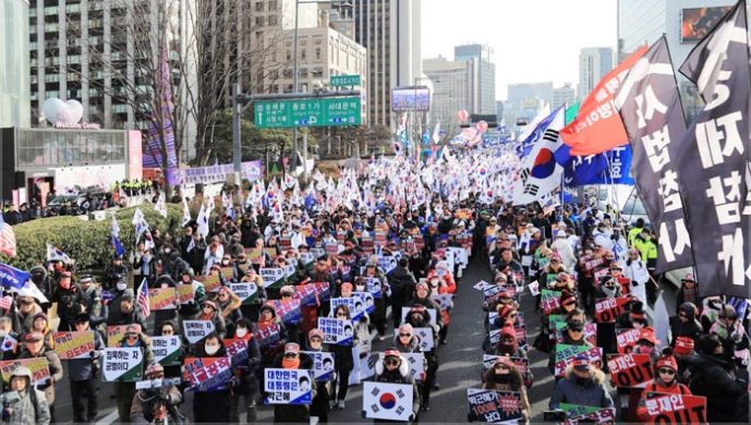ソウル都心で太極旗集会「朴槿恵前大統領を釈放せよ」