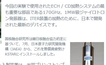 日本はとっくに5億℃とか達成しているのだが。>>1韓国の人工太陽、知ってみれば「日本が無料で貸した物」だった。