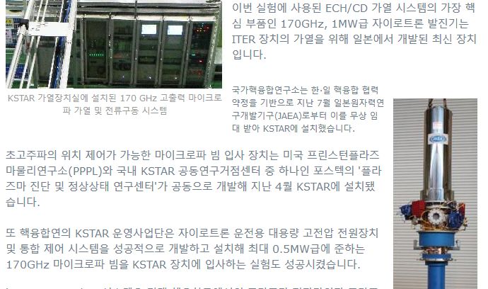 これまで中国など海外の核融合装置は瞬間的に1億度以上の高温プラズマを達成するのには成功したが、これを10秒以上維持できなかった。KSTARは次世代プラズマ運転モードのひとつである内部輸送障壁の性能を向上させ長時間プラズマを維持するのに成功した。