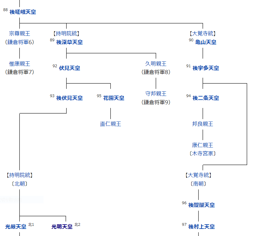 どこから南朝北朝だと言う話になるの?どこで勉強したか知らないけど、ずっと天皇家の血筋で繋いでいるから、南朝でも北朝でも元は同じなのよ。同じ天皇家の話。
