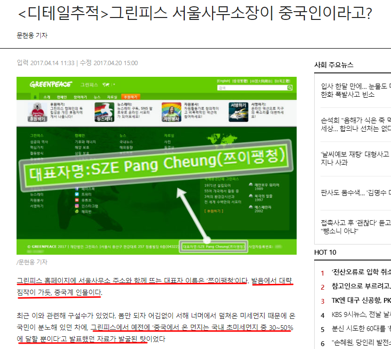 ソウル事務所,グリーンピース東アジア担当者が中国人www