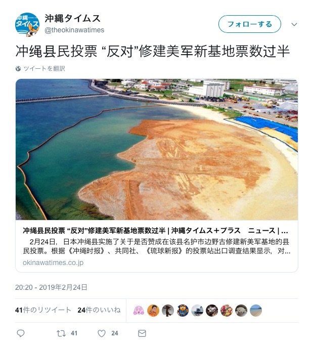 昨日、沖縄普天間の埋め立て是非を問う県民投票が行われたのがだ、