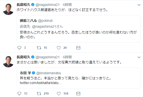 ワシントンポスト( WP)は、「一部のアナリストは、トランプ大統領が安倍首相をムン・ジェイン大統領と混同した可能性もあると推測している」と報道した。