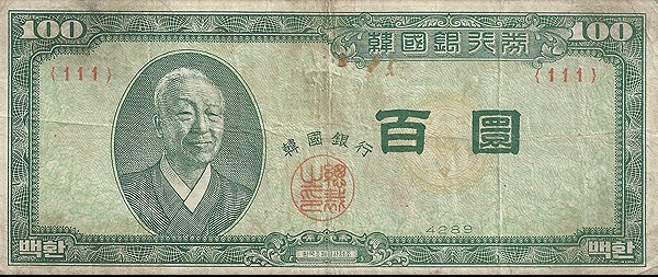 1名無し2019/02/17(Sun) 22:45:06ID:k4OTA0NDE(1/1)NG報告WW2以降で何回、通貨単位変更(denomination)したの?日本は江戸時代から明治に変わる時に1回だけでWW2以降は0回だよ12名無し2019/02/17(Sun) 23:17:04ID:cyNzk2MA=(1/1)NG報告.23名無し2019/02/17(Sun) 23:21:34ID:Y4MTk4OTg(1/1)NG報告1945~1953 旧ウォン(圓)1953~1962 ファン(환; 圜)1962~現在 新ウォン (원)交換率1000圓=10圜=1원>>934名無し2019/02/17(Sun) 23:46:37ID:QyNzA5MTc(1/1)NG報告円天05名無し2019/02/18(Mon) 01:18:27ID:g2ODc4MDI(1/1)NG報告うんこ紙程度の価値だw26名無し2019/02/18(Mon) 07:42:12ID:UwMDEyNzg(1/1)NG報告元もウォンも円から作られた読みから>>717ゴジゴジラ2019/02/19(Tue) 22:53:34ID:IxNjQ5MjM(1/1)NG報告>>6日本発祥だから呼び名を変更しなきゃダメだよね?08名無し2019/02/19(Tue) 22:56:58ID:QwNTQ3NQ=(1/1)NG報告韓国は外貨が足りなくなったら北朝鮮に頼んで スーパーKやスーパーノートを刷って貰ったら無問題09hato◇chon_shine2019/02/19(Tue) 23:04:55ID:E2NjEzMjc(1/1)NG報告>>3朝鮮戦争で共産軍に紙幣の原版を奪われて、急遽日本が新紙幣を発行してあげたんだよね。その前のは朝鮮初の中央銀行を請け負った第一銀行券(みずほ銀行が継承)から。110名無し2019/02/19(Tue) 23:06:15ID:g2OTMwMjk(1/1)NG報告え? 南朝鮮通貨切り下げやってんの?0