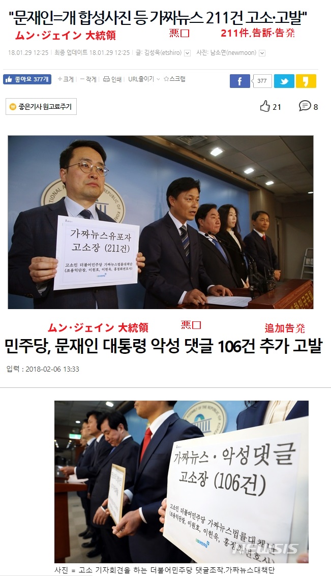 "文在寅(ムン・ジェイン)=犬合成写真など、偽のニュース211件の告訴・告発"
