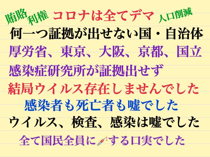 日本での逮捕者リストは、ゲイツと資金提供で共謀している首相、厚労相、ワクチン担当相、厚労省からワクチン推進委託された電通、電通に雇われたこびナビ連中、マスコミ幹部、NHK会長