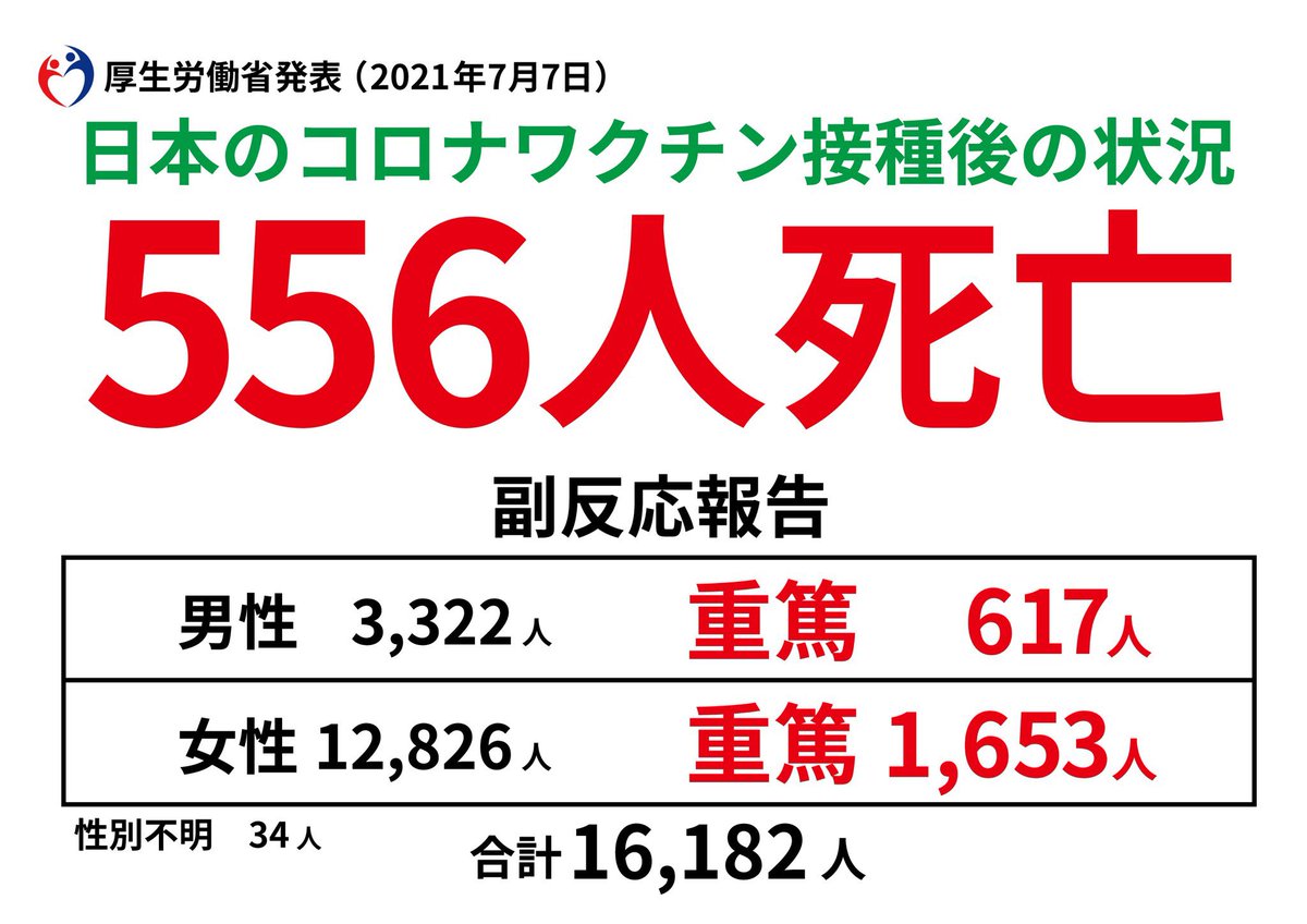 コロナ毒ワクチン接種後の死亡802人。