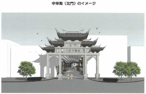 候補地はJR新今宮駅の南側で、10の商店街が集まる南北約600メートル、東西約500メートルのエリア。計画では東西南北に四つの門を設置し、広東や福建、四川など中国各地の料理などを楽しめる飲食店や雑貨店、文化施設などを整備する。