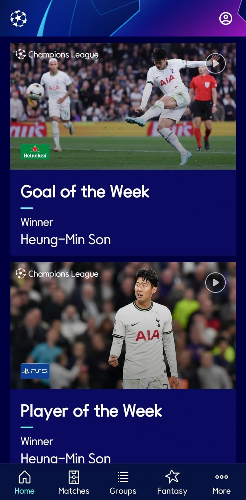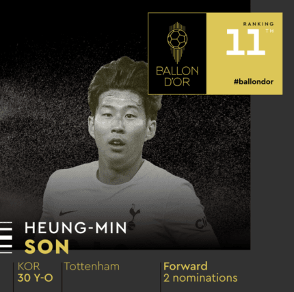 10/13 ソン・フンミンがCLグループリーグ第4節の最優秀選手に選出(リーグ公式)