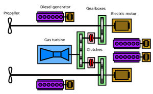 CODLAG(巡航・モーター推進だけ、、高速・ガスタービン+モーター 搭載してるディーゼルエンジンは推進軸とは繋がっていなくて発電するだけ)って新しいタイプ