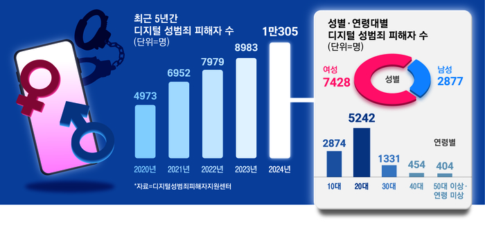 昨年、デジタル性犯罪の被害に遭い、支援を要請した被害者が1万人を超えたことが確認された。 社会に大きな衝撃を与えたN番部屋事件の捜査が終わった2020年と比べると、2倍以上急増した。 ソーシャル·ネットワーキング·サービス(SNS)の形態が多様化し、ディープフェイクなど人工知能(AI)技術が発展し、デジタル性犯罪による被害も手のほどこしようのない速度で拡散する様子だ。