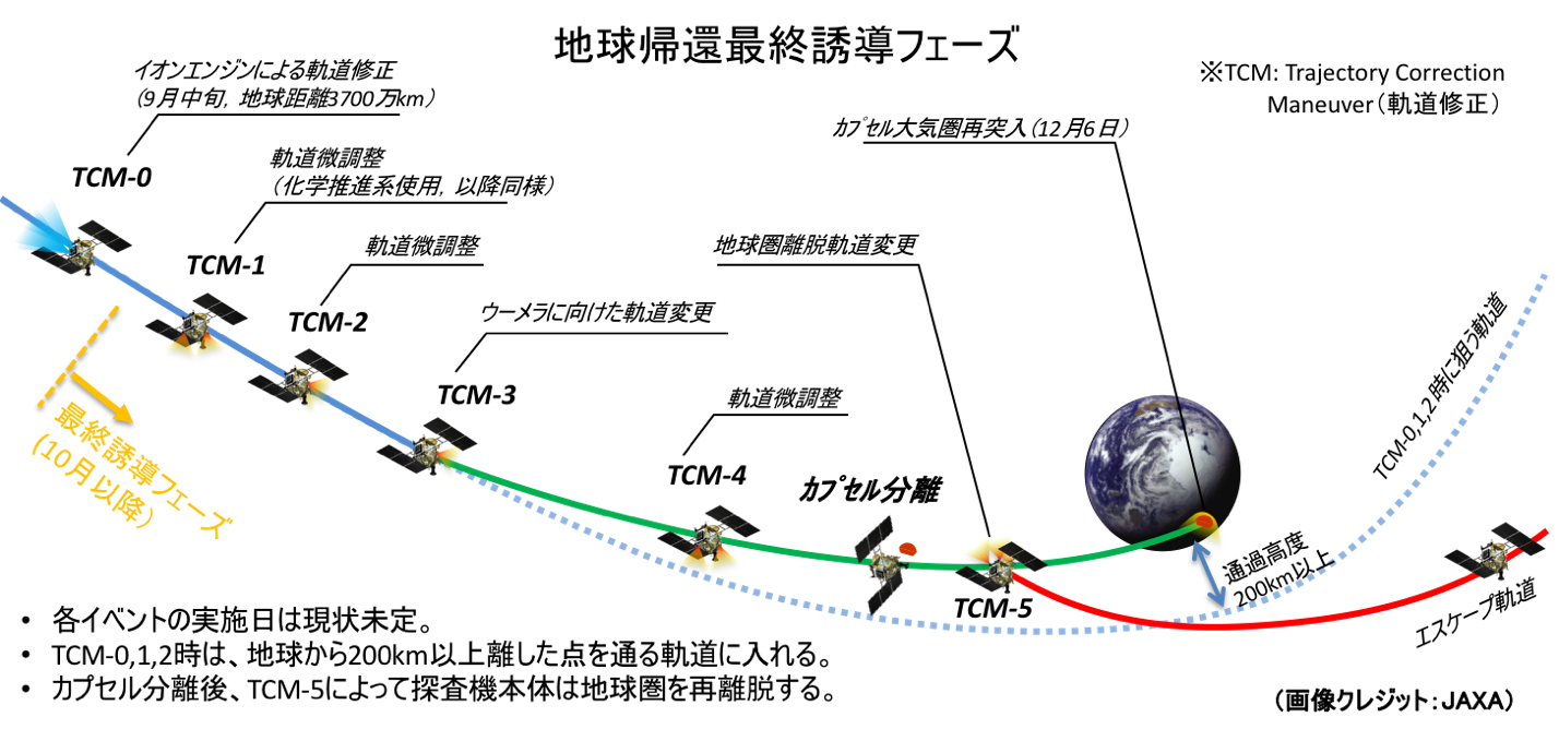 カプセルの再突入日は、2020年7月14日付プレスリリース「小惑星探査機「はやぶさ2」のカプセル帰還に関する豪州宇宙庁(ASA)との共同声明の発表について」にてお知らせしましたとおり、2020年12月6日(日本・豪州時間)、着陸場所は豪州ウーメラ立入制限区域の予定です。本許可が得られたことで、カプセル回収の実施に向けて大きく前進しました。引き続き、「はやぶさ2」の地球帰還、カプセルの再突入へ向けて慎重な運用を続けるとともに、適時、運用状況についてお知らせいたします。ロケット打ち上げ、