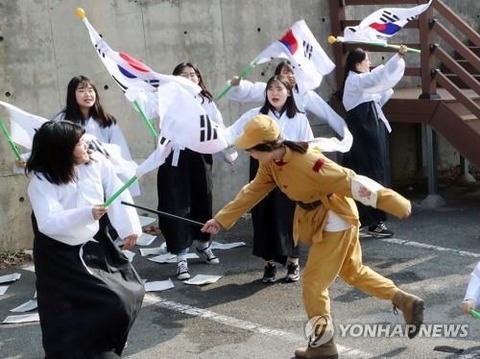 日本憲兵の軍刀で左腕を失った女子学生はもう一方の手で太極旗を取り上げて大韓独立万歳を叫びました