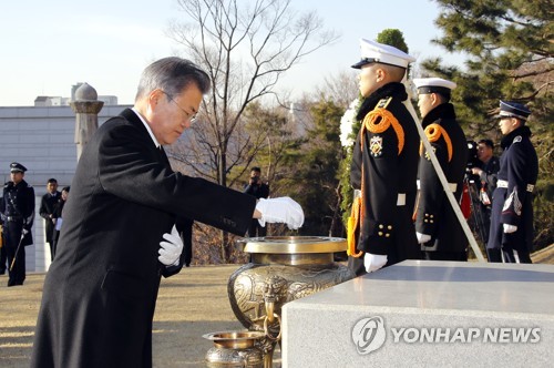 (ソウル=聯合ニュース)イムヒョンソプバクギョンジュン記者=ムン・ジェイン大統領は26日、ソウル孝昌公園で白凡・金九先生の墓地などの独立運動家墓地を参拝した。