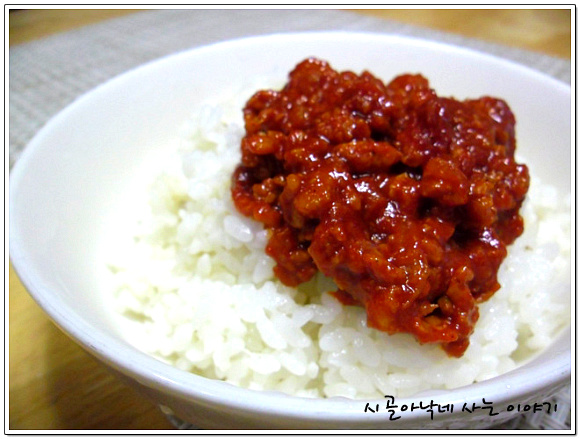백색 밥에 그대로 투하합니다.