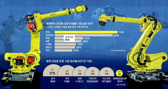 朝鮮日報「製造業強国の韓国」産業用ロボット使用率1位、購入台数3位だが・・・
