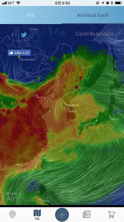ヤバい。↑を見れば、南朝鮮からPM2.5等 汚い空気が流れてきていることは間違いない。