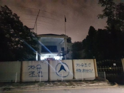 マレーシアの駐在北朝鮮大使館が10日夜「落書きテロ」を受けた。クアラルンプールにある大使館正門の両側の壁には、「自由朝鮮我々は起こる! "、"キム・ジョンウン打倒」などの落書きが強行された。