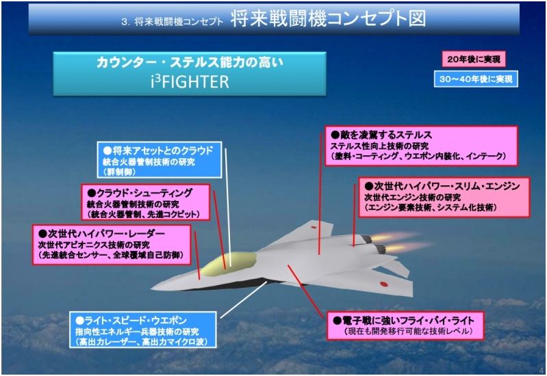 F-3は現在開発中だよ、今は国産エンジン「XF9」は完成した。新AESAレーダーもGaNで作ってて今後試験が進むだろう、ウエポンベイの開発も進んでる、戦闘機中央部分を想定した5.2 m x 8.6 mの供試体も、2017年度に三菱重工で製作されたよ、機体製作への対応も順調だ