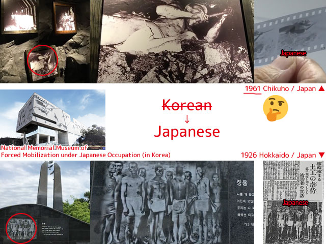 「日本の北海道で強制使役された日本人」の写真を「強制労働に動員された私たちの民族」で紹介