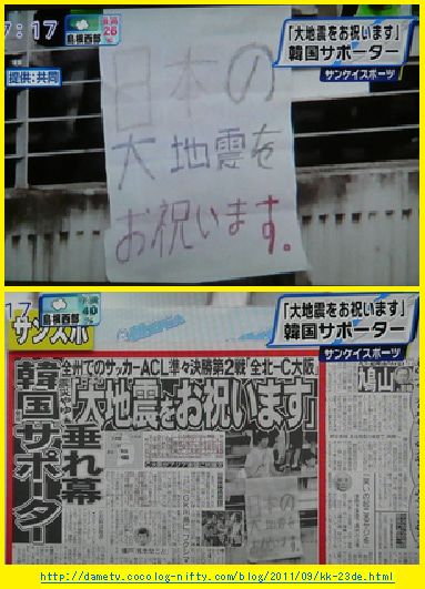 まぁ火事場泥棒になんて応援されたくないし、もうすぐ断交なんだから気にしない気にしない。朝鮮人からの見舞いなど必要ない!