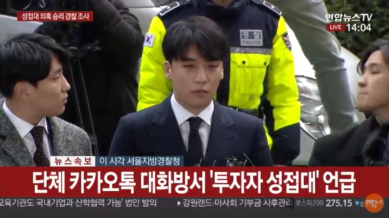 報道によると、勝利は過去2014年8月頃、ビジネスパートナーのA代表に性上納をする女性の写真、年齢、職業、性格などを知らせた。さらに1人当たり1,000万ウォンという「価格表」まで付けた。