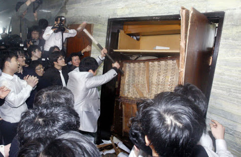 今日韓国国会の文在寅党の与党演説集団妨害映像