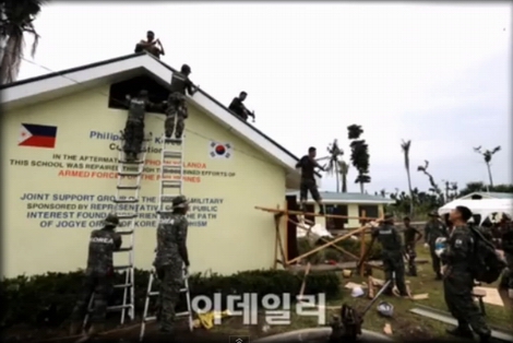 ↓屋根を修復中の写真。すでに韓国旗に塗り替えられている。>>31
