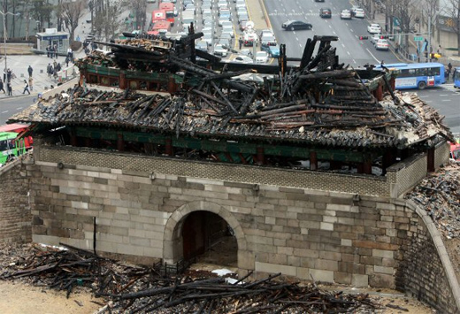 バカな韓国人が放火した結果ですよね。この復元は形だけはできたが、彩色の失敗で、色が剥がれてきましたね。その後どうなったのでしょう。