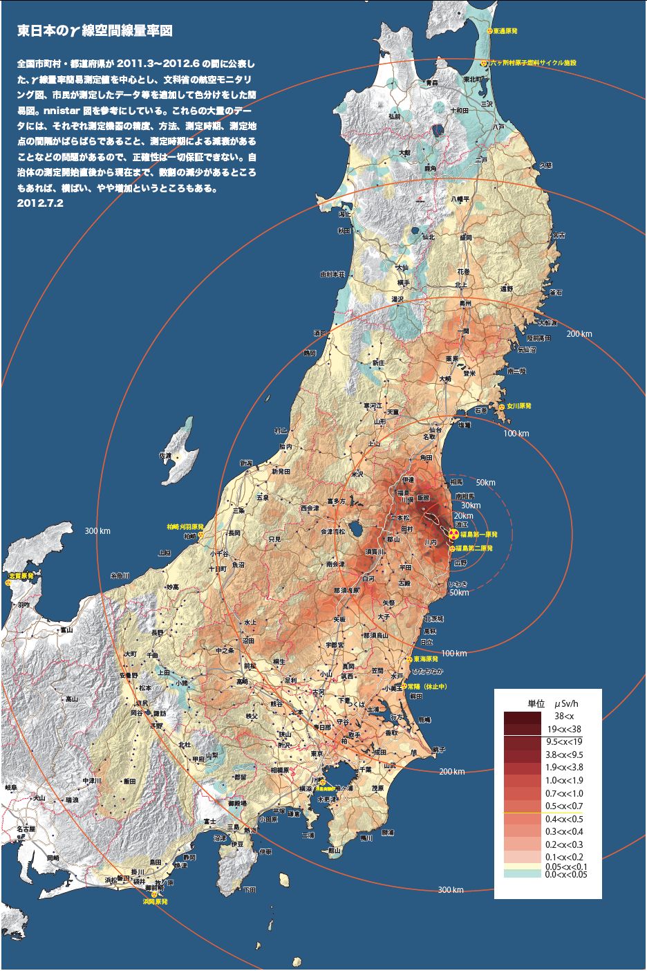 で、日本全土の放射線量は確認できる。(real timeに近い)